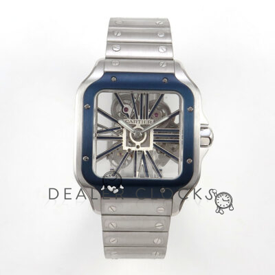Santos Skeleton SS RF 1:1 Best Edition Skeleton Dial Blue Bezel on SS SmartLink Bracelet 9611MC Super Clone