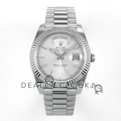 Day Date 40 SS TMF 1:1 Best Edition Silver Textured Stick Dial on President Bracelet VR3255 (Weighted) 208g