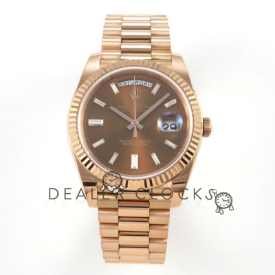 Day Date 40 RG TMF 1:1 Best Edition Brown Diamonds Dial on President Bracelet VR3255 (Weighted) 208g