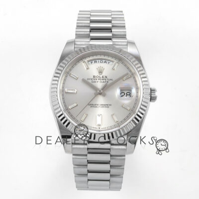Day Date 40 SS TMF 1:1 Best Edition Silver Crystal Dial on President Bracelet VR3255 (Weighted) 208g
