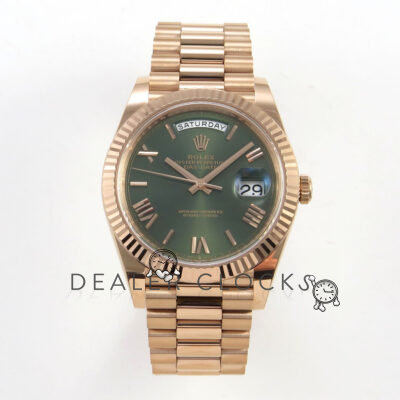 Day Date 40 RG TMF 1:1 Best Edition Green Roman Dial on President Bracelet VR3255 (Weighted) 208g