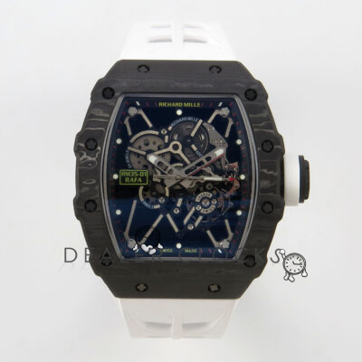 RM035-01 White Carbon ZF Best Edition Skeleton Dial On Black Rubber Strap Super Clone RMUL2
