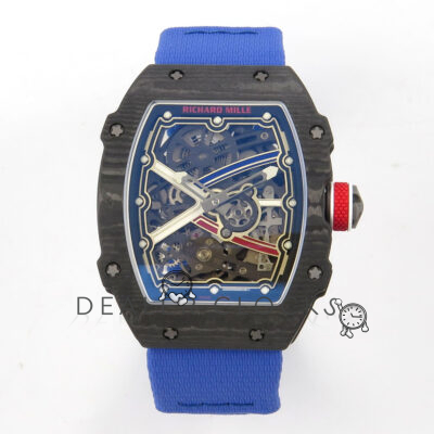 AVF RM67-02 France Black NTPT Spain Skeleton Dial on Blue Elastic strap CRMA7 Clone