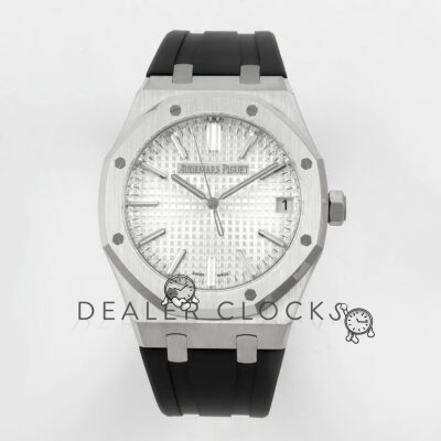 Royal Oak 41mm 15510 SS DDF 1:1 Best Edition White Dial on Black Rubber Strap DD4302 Super Clone