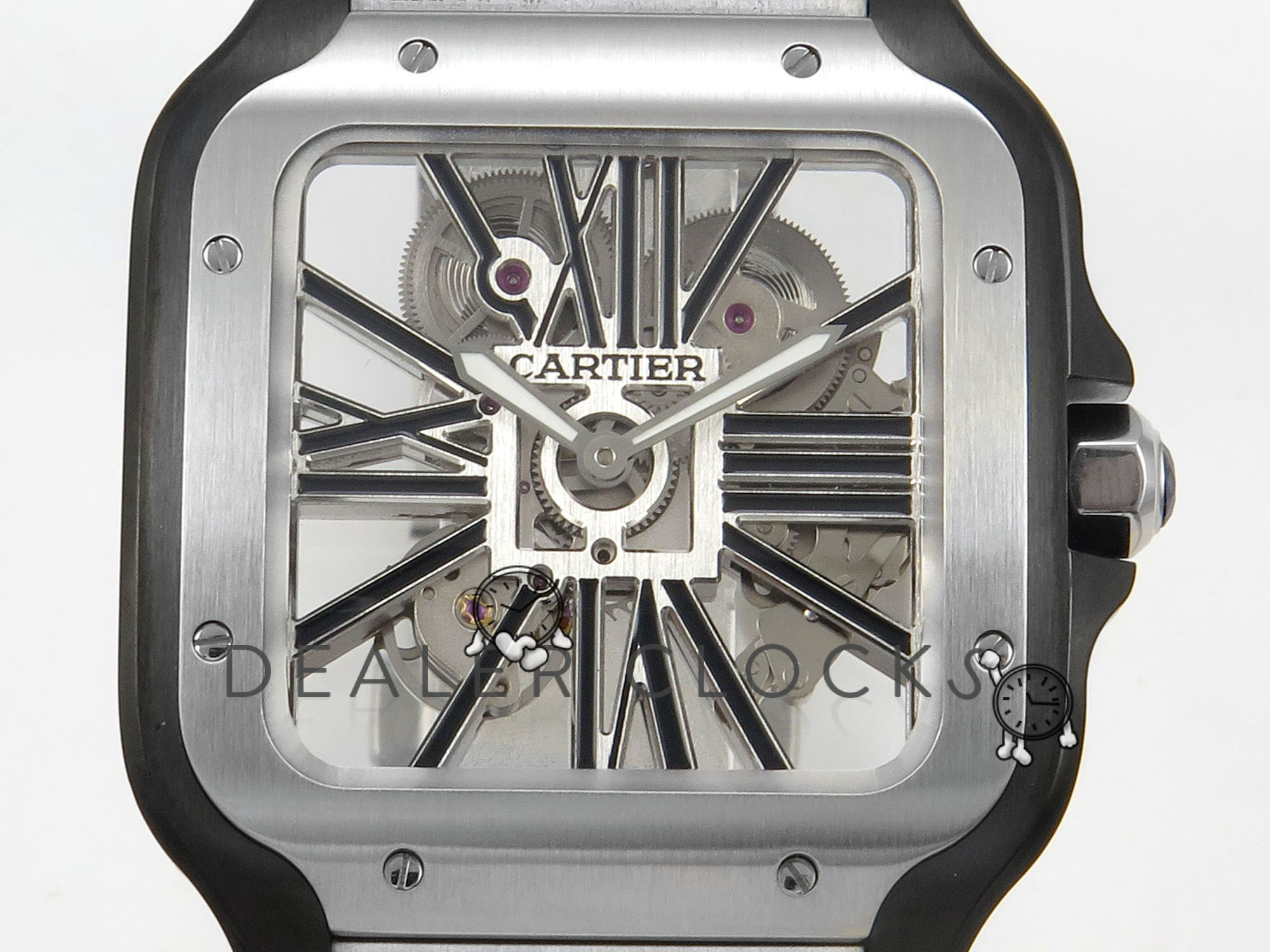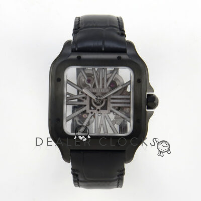 Santos de Cartier Skeleton PVD MLF Skeleton Dial on Black Leather Strap 9612MC Super Clone