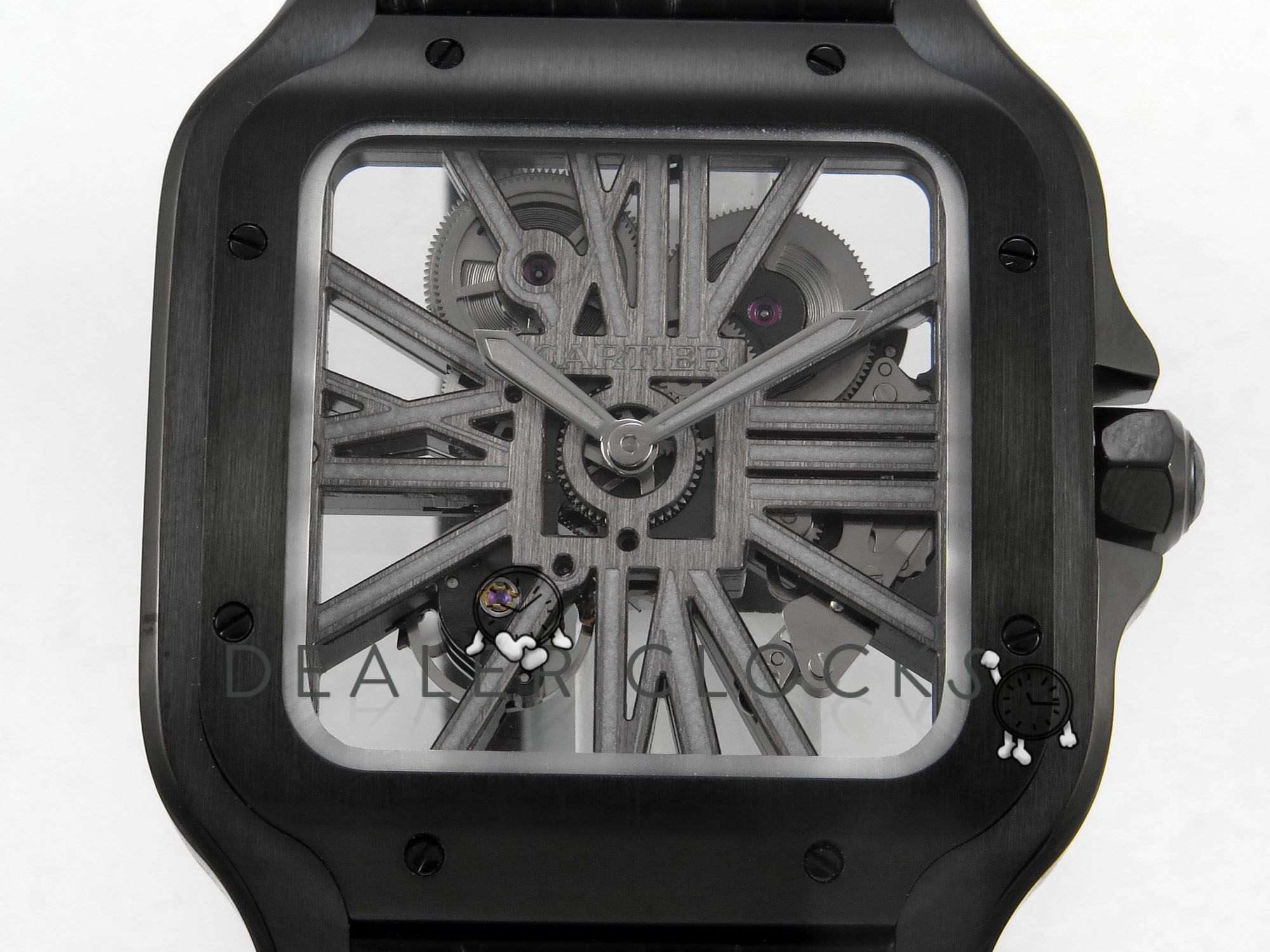 Santos de Cartier Skeleton PVD MLF Skeleton Black Skeleton Dial on SS SmartLink Bracelet 9611MC Super Clone