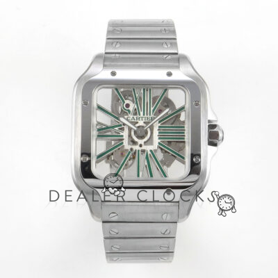 Santos de Cartier Skeleton SS MLF Skeleton Green Dial on SS SmartLink Bracelet 9611MC Super Clone